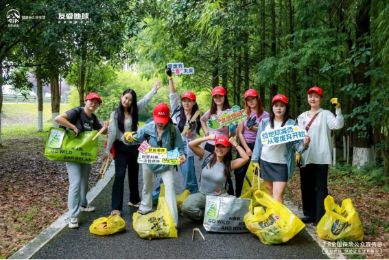 2025年情谊地球首站成都站行为中,盟邦希望者们通过捡拾活跃,助力绿色金融。盟邦人寿供图