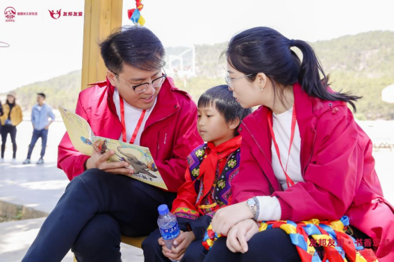首批盟邦情谊·爱心图书室于云南维持落成后,盟邦营销员赶赴本地探望。盟邦人寿供图